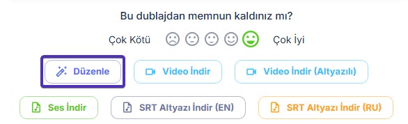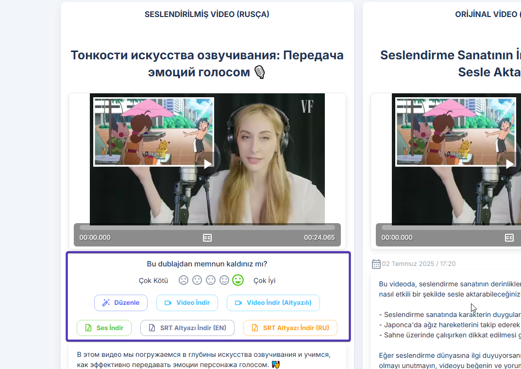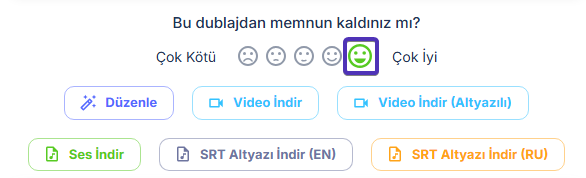After viewing your dubbing, we'd love to hear your feedback. In this area, you can rate the results and share your satisfaction with us.