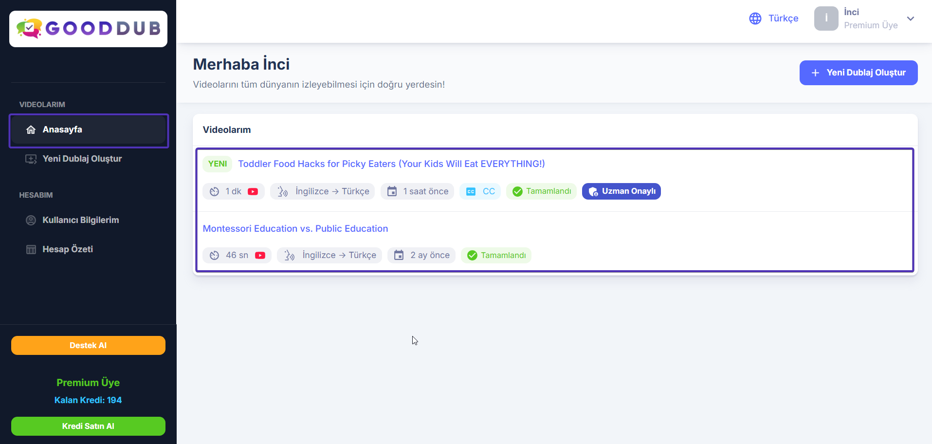 You can also view your dubbing video both with and without subtitles using the CC subtitle button on your dubbing video.