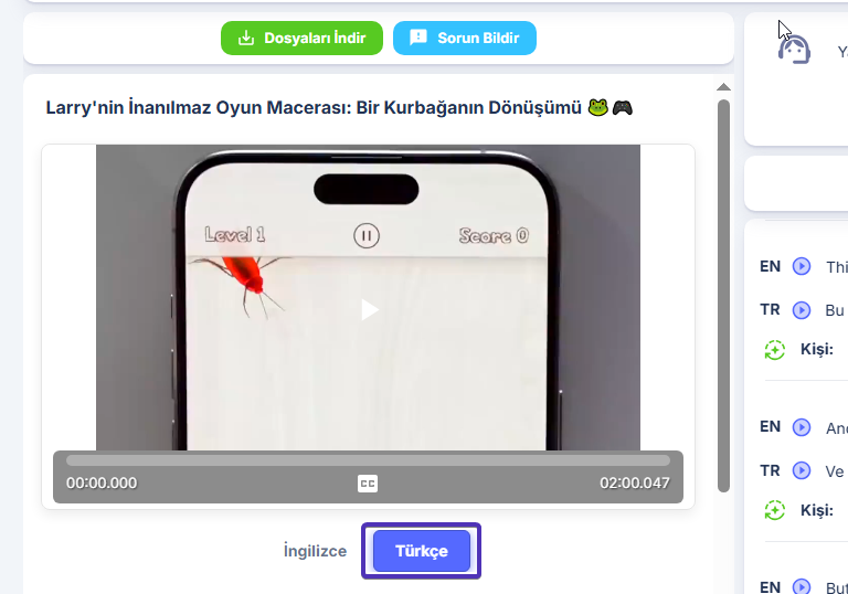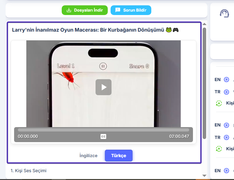 You can access the page where you can download the files of your completed video dubbing with the "Download Files" button. For page details, browse "Dubbing Download & Review".