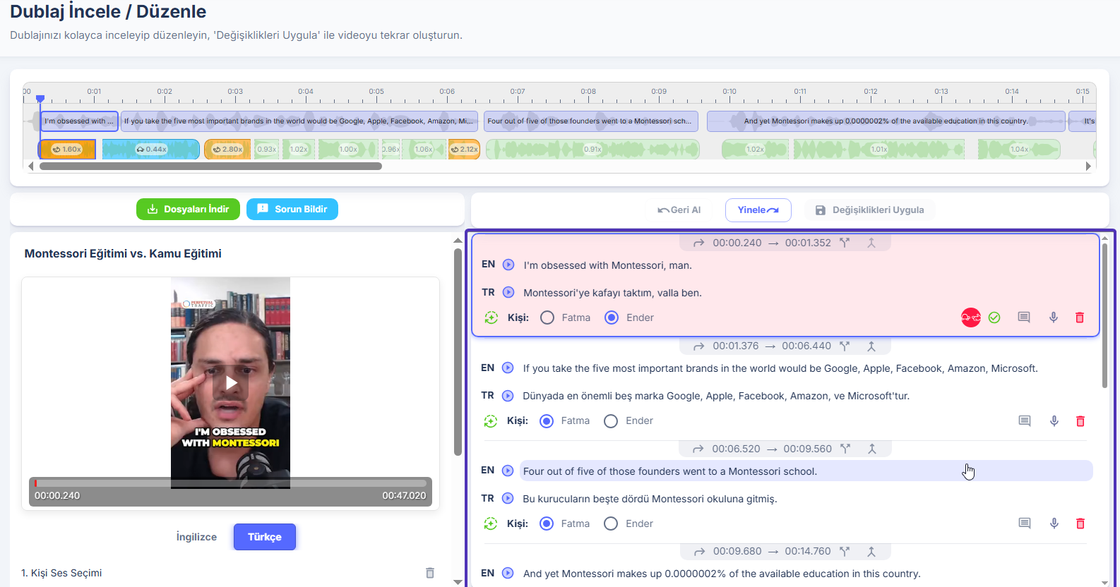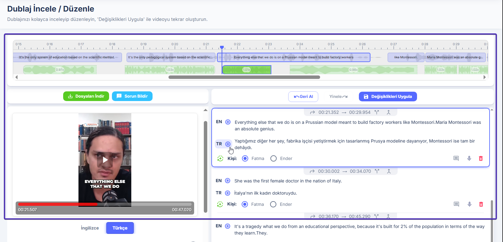 Don't forget to click the "Apply Changes" button for the changes you make on the editing page to be applied to your dubbing!**