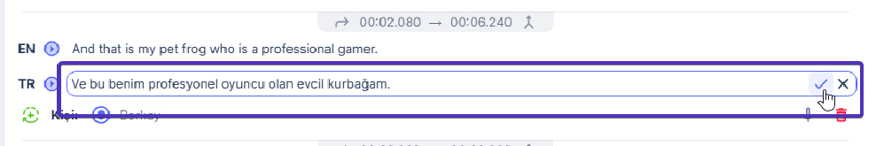 If you want to make changes/corrections to the texts, just click on the sentences. Press enter or click the confirmation icon to save your changes.