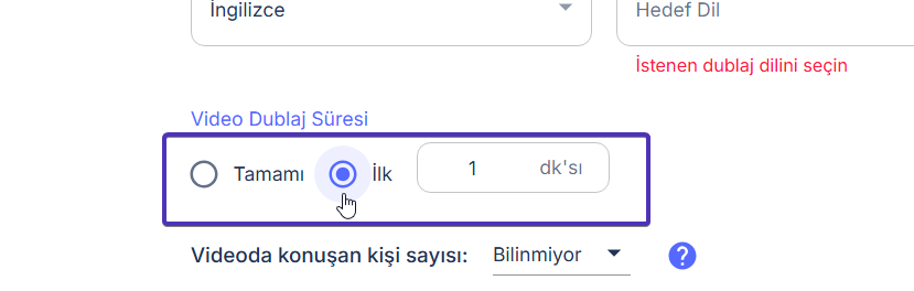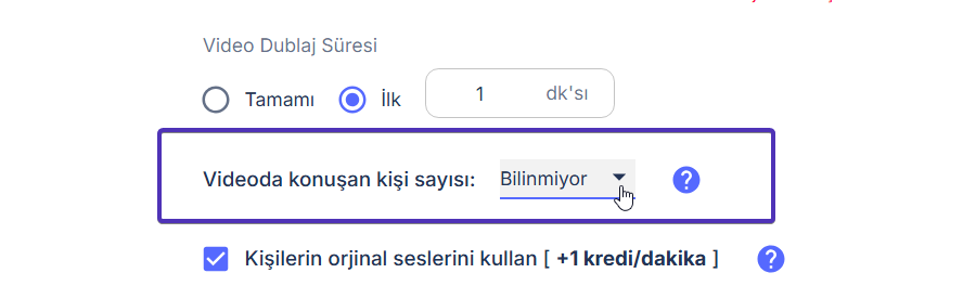 Indicates how many people are speaking in the video. This information improves the quality of AI dubbing. If you don't know, select the 'Unknown' option. In this case, the AI will try to automatically determine the number of speakers in the video: