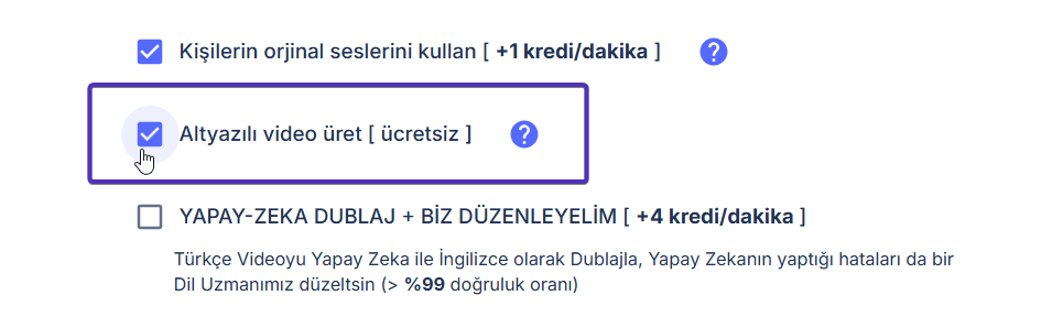 With this option, you can add subtitles to your dubbing. Moreover, this option is free and doesn't use your credits!