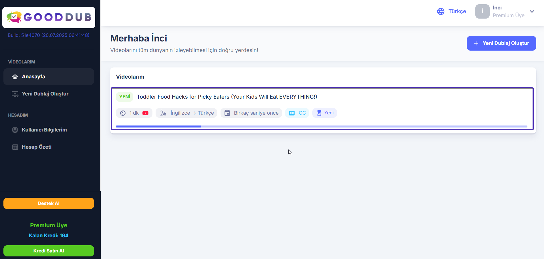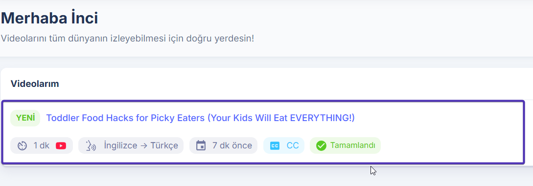If you see "Completed" written under the project name, your video is ready. You can view the result by going to the Watch/Edit Dubbing page of your dubbing and make changes if you want.