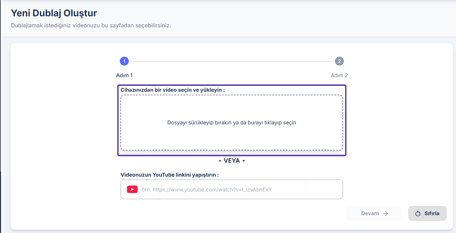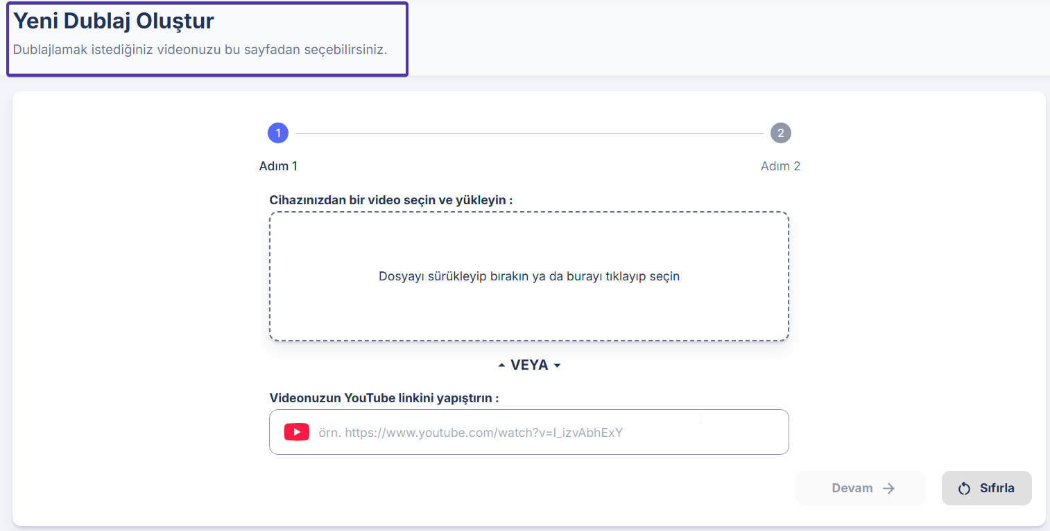 You can create your new dubbing projects on this page. Let's look at how you can do this step by step.